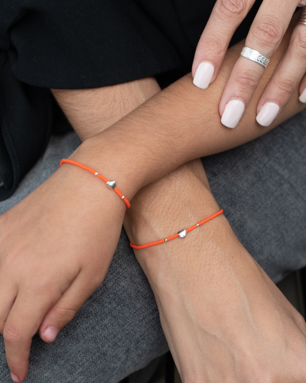 Para que la pulsera se ajuste a la mayoría de las muñecas, vienen con cierre ajustable de macramé y están hechas con mostacillas de cerámica, tres mostacillas de plata y un corazón de plata.