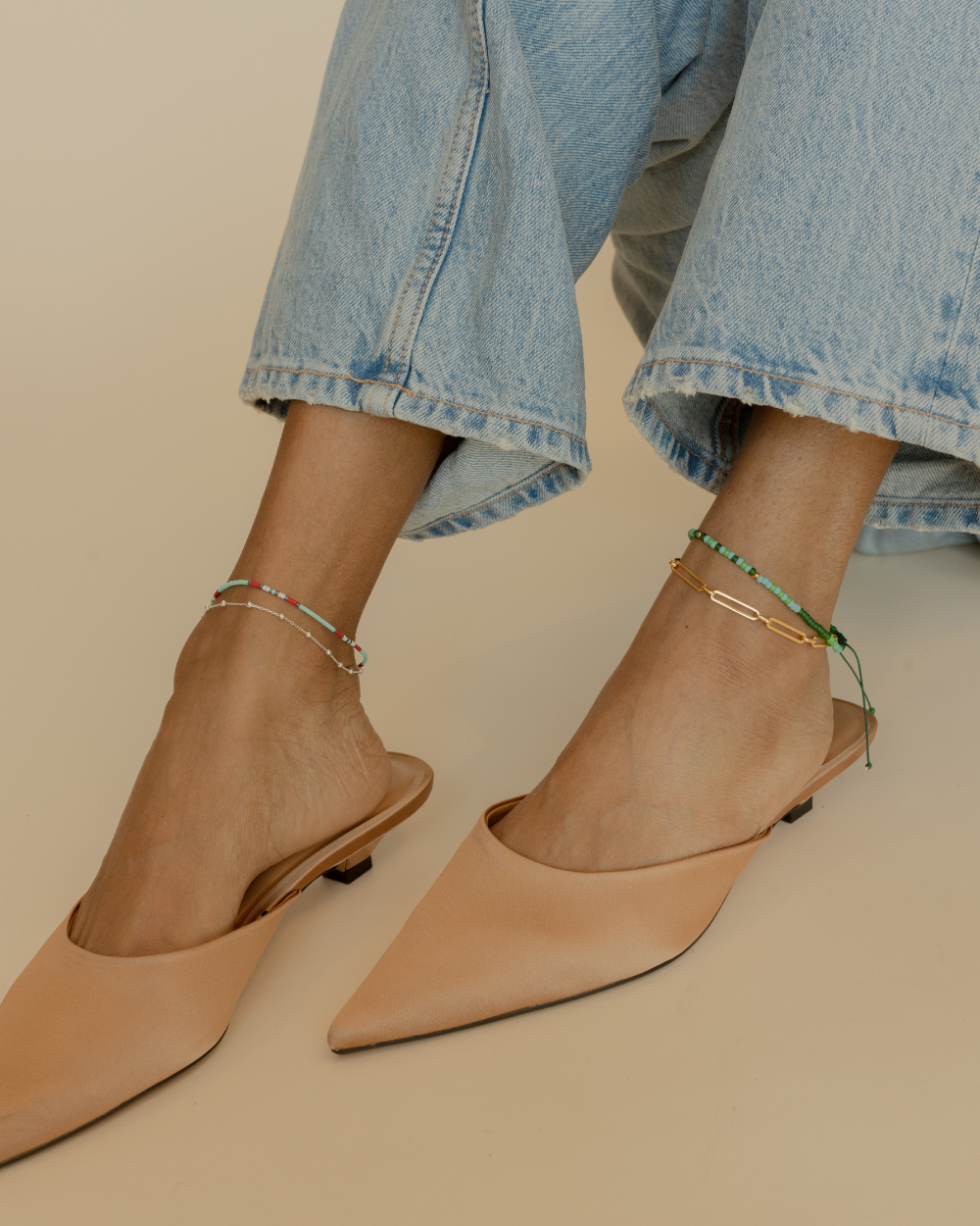 Tobillera Candy Verde con Mostacillas Bañadas en Oro