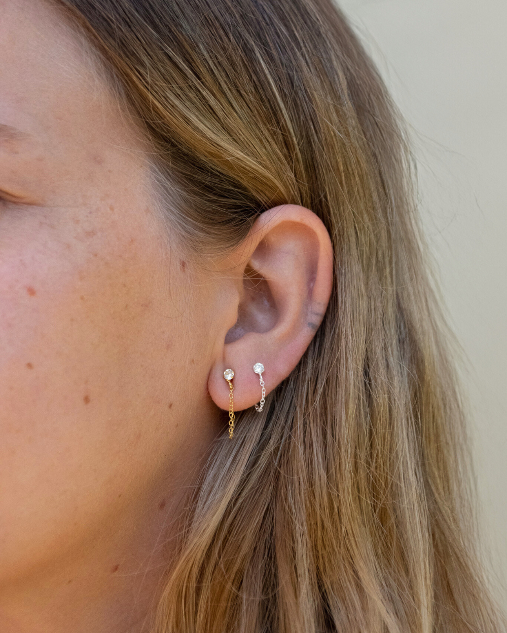 Los aros con cadena y circón son un complemento ideal para cualquier estilo.
